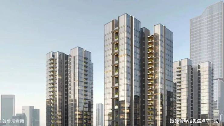 从效果图来看,外立面采用 LOW-E玻璃+金属线条+金色铝板,很有调性, 阳台采用错层挑空设计,四代住宅+豪宅板上钉钉。