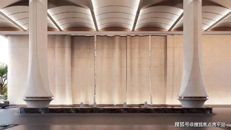 - 归家仪式感:车行入户大门设计为“殿堂级落客区”,连接天幕与水景;每栋独立入户大堂采用无棱角高端石材,风格奢华统一。