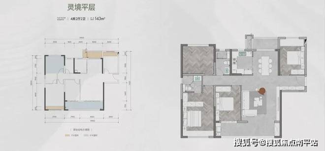 中建桃李九章项目二期在售3个户型,分别为建面约110-143-185㎡,均有大面积赠送,空间利用率较高,得房率能达到96%。