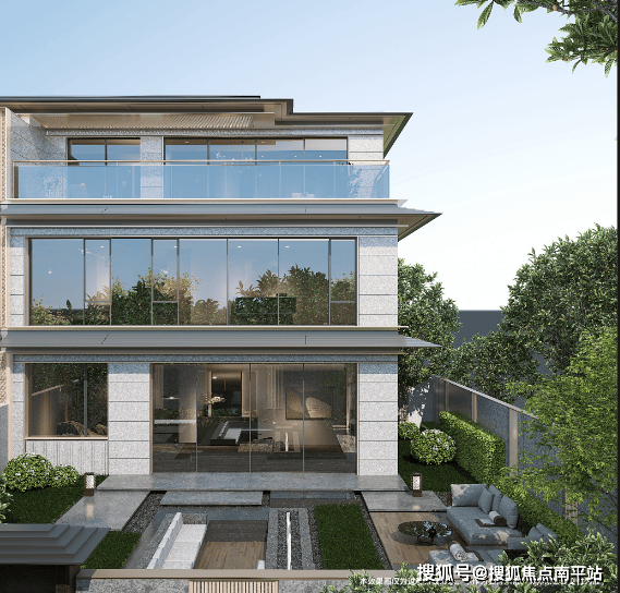 · 南居:大面积干挂石材与玻璃铝板结合的立面,“重檐”元素的东方气质,“线框造型” 强化别墅横向线条的大气磅礴之势,重塑金茂·璞印梅溪项目独有的建筑“符号标志”,革新长沙别墅高阶审美。