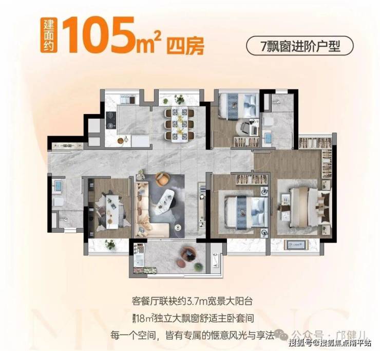 全飘窗赠送设计,扩大使用空间。例如,85㎡户型通过飘窗赠送,实际得房率超90%。