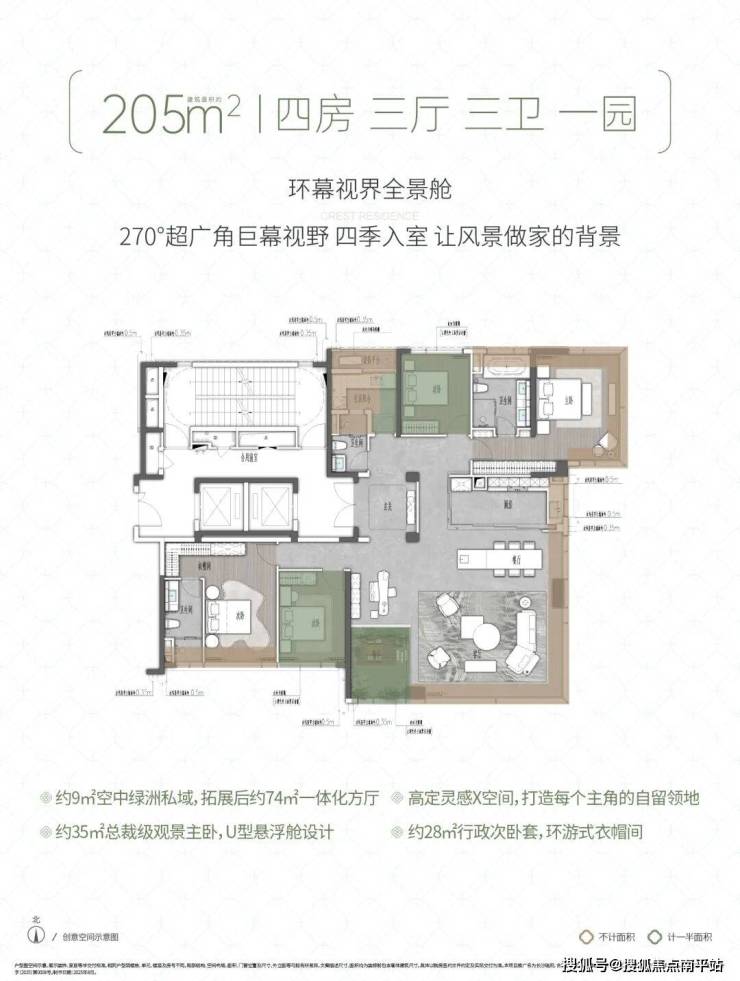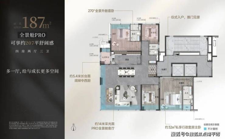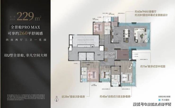 【建面约229㎡全景舱户型图】建面约229㎡可享260㎡空间感