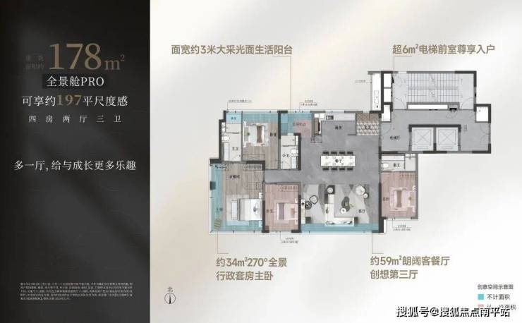 【建面约178㎡南厅户型图】建面约178㎡可享197㎡尺度感