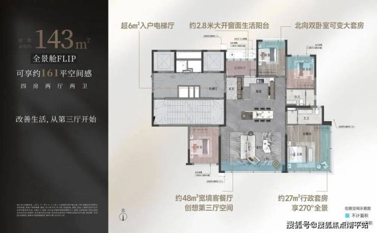 【建面约143㎡南厅户型图】建面约143㎡可享161㎡空间感