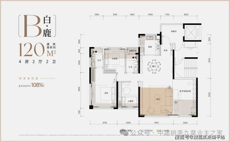 白鹿:120㎡四房两厅两卫全能配置,从容应对四口之家或三代同堂的居住需求;