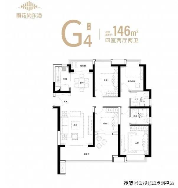 预算更足的,直接考虑 建面约146㎡四房两厅两卫户型: