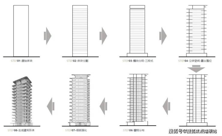 塔楼身段造型从自然界竹节元素中汲取灵感,展现出独特的美学与文化内涵。设计团队提取了竹节所蕴含的优美弧线,并将其巧妙融入到塔楼的轮廓线条之中。象征着积极向上的生长态势,寓意着生活的细水长流与节节高升。