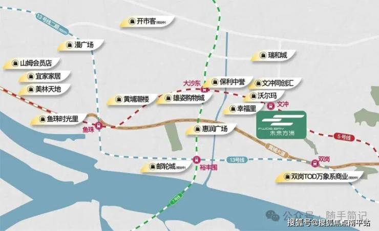 1公里可达31万㎡华润万象系商业(含12万㎡购物中心,在建中)文冲东和双沙大型商业MALL、沃尔玛、万科里;5公里涵盖山姆、宜家、盒马等品质商业;