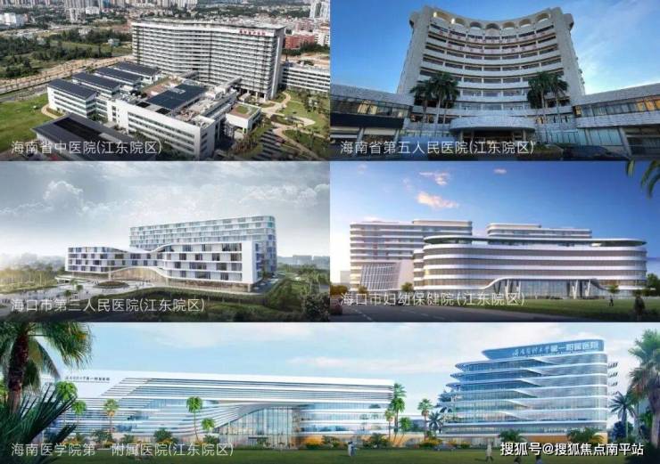 海南省中医院(江东院区)、海口市第五人民医院(江东院区)、海口市第三人民医院(江东院区)、海南医学院第一附属医院(江东院区)、海口市妇幼保健院(江东院区)等医疗资源聚集,优享甲级医疗服务配置。