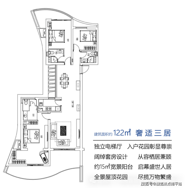 建筑面积约122平三房两厅三卫