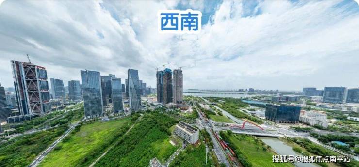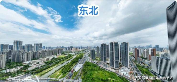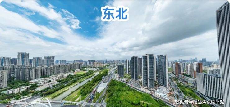 东北: 楼下近距是公园绿地和双界河东段景观,远处看新安老城方向,整体远景城市景观为主。