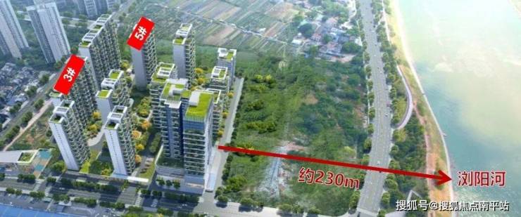 ▲项目南门距离浏阳河仅230m,尽享一线浏阳河景
