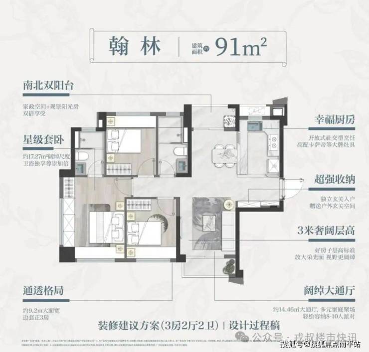 而91㎡边套正三房则做到了既实用又要腔调的。对比市面上一手房,有以下惊喜: