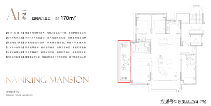 说实话,宁悦府洋房170㎡的户型真的很绝,四房两厅三卫双套房设计,户型创新采用“零走廊”高效布局,得房率高达约85%,奇偶层分别赠送约16-19㎡空中露台,综合使用率约110%。
