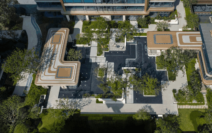 “静水流深”是精神内核,项目就连消防登高面都做了大片的水系,“第五立面”也巧思做了艺术设计,空间艺术感每一帧皆是底蕴、皆是风情、皆是奢华。