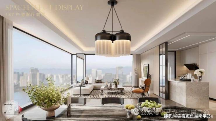 在地化设计:萃取楚文化菱形纹、云纹符号,运用青玉色色彩等元素,打造现代建筑与在地文化共融的人居作品。