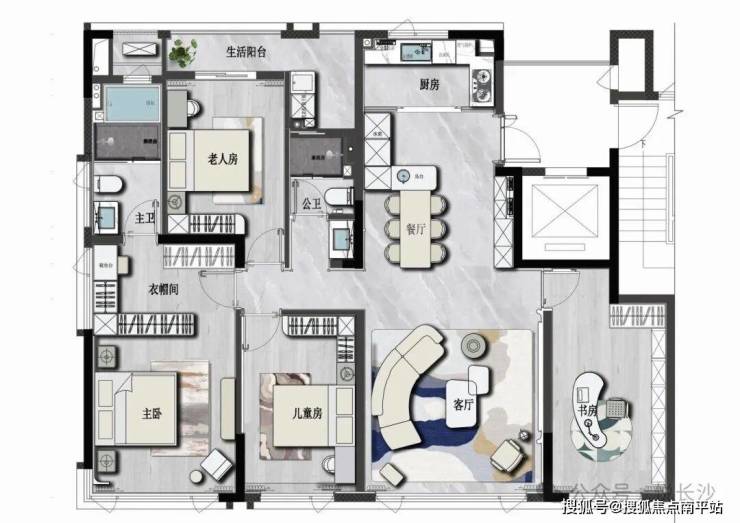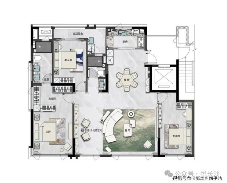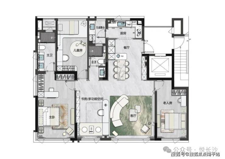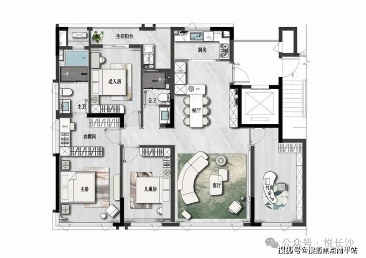 双套房设计,老人房和儿童房起居动线互不打扰,保障家庭成员的隐私性和舒适度;