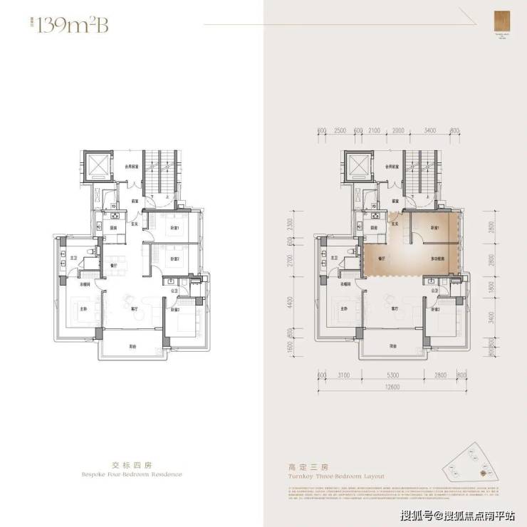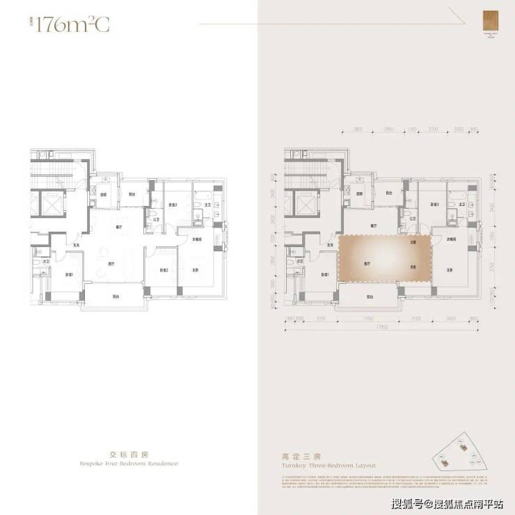 在招商 海晏府,基于户型结构做的第一件反常规的事,就是: 无论户型大小,给到的基础模板都是全能的4房结构。