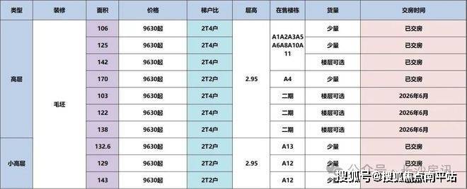 项目户型、价格、楼栋、货量详细信息如下图