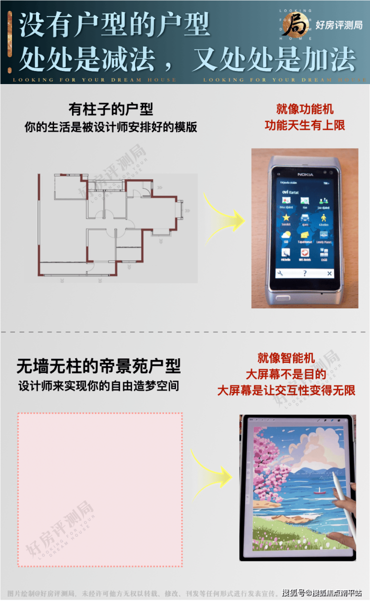 现在你在全国市场上能听到“端厅”、“全面屏”、“全景舱”各种房子的宣传词。帝景苑为什么没有类似的宣传?