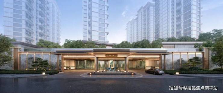 抬板式立体社区设计,地势全域抬升,三重垂直维度,营造出可步入的立体园林。这不仅是物理层面的抬升,更是生活仪式感的抬升。酒店式环岛落客区、栋栋无风雨连廊,从入口到入户,每一步都在诉说“尊崇”二字。