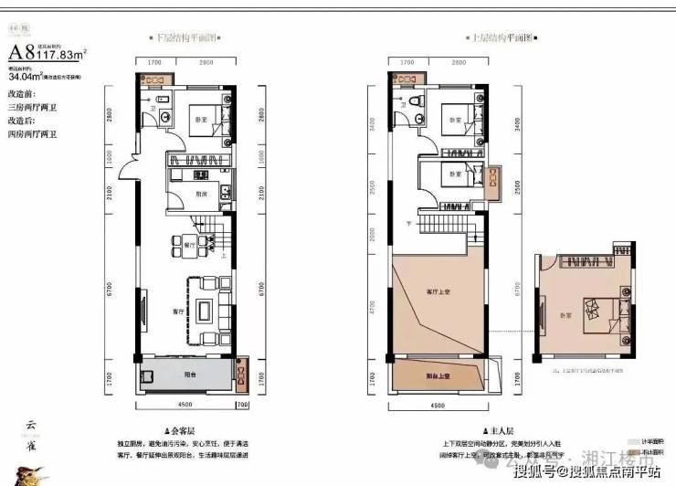 邦盛复式山的户型设计也十分贴心。以123㎡四房户型为例,会客层客厅连接阳台,阳光和美景轻松入室;独立卧室可打造为长者卧室,方便老人居住。主人层客厅阳台上空能改造成套房,配备衣帽间和大阳台,尽享格调生活。而且,每个户型都有可拓展空间,赠送面积可观,实用性拉满。