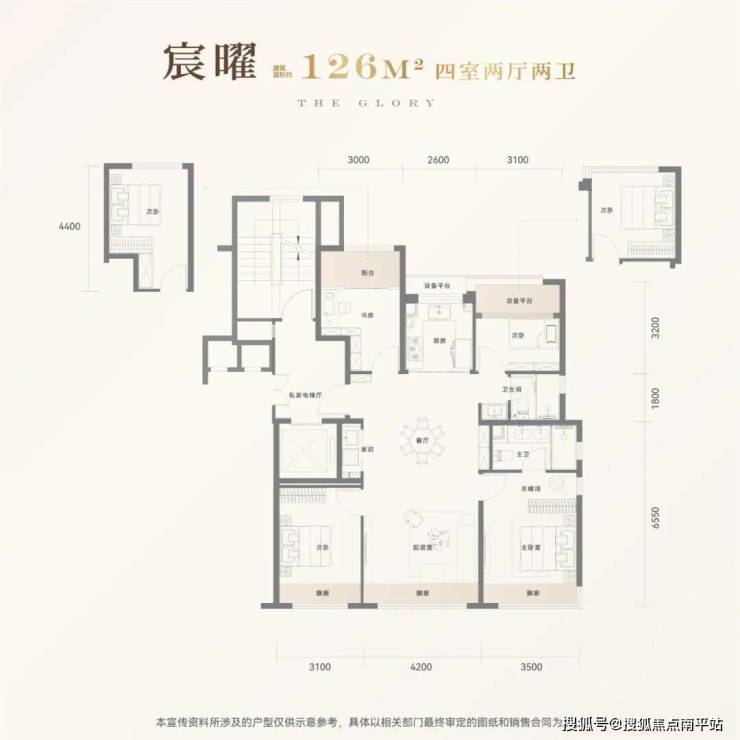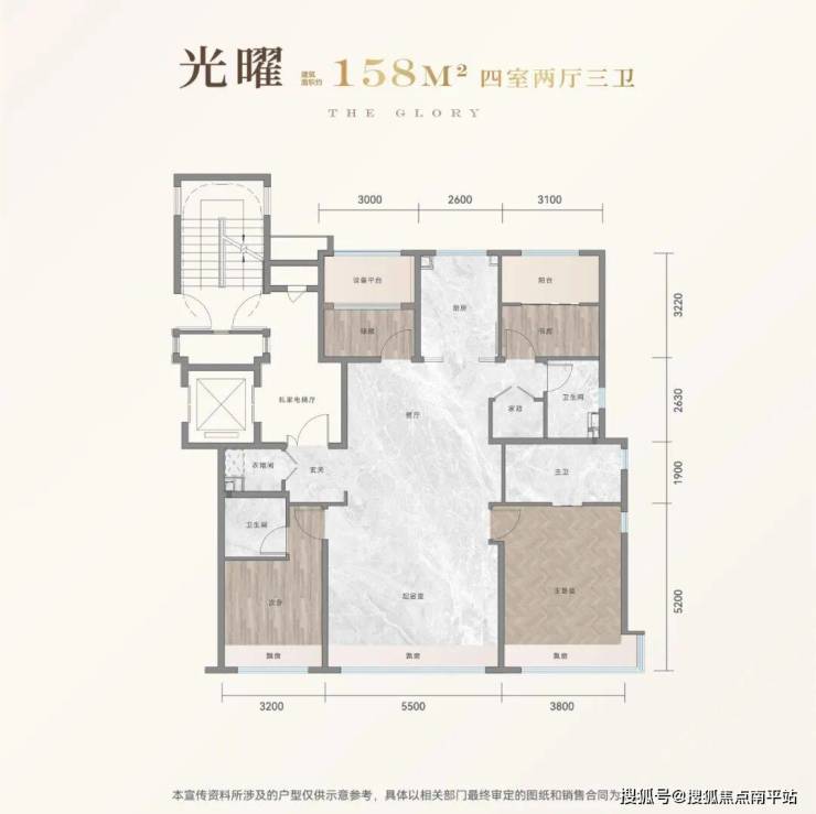 建筑面积约158户型享约5.5m宽厅设计,以空间的开阖,定义大宅的奢享尺度。