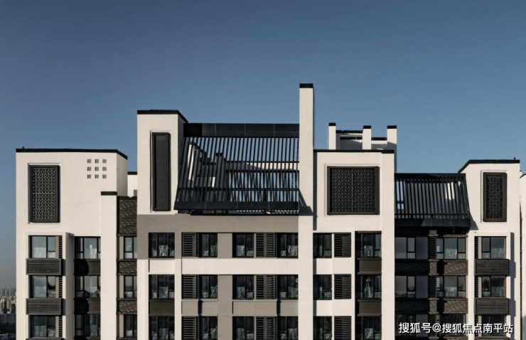 建筑美学:注重建筑外檐的多样和变化,兼顾建筑的延年和美观。青瓦和坡屋顶,院墙与马头墙,建筑的顶部错落有致,金属构件演绎传统雕梁,使得中式风骨历久弥新。