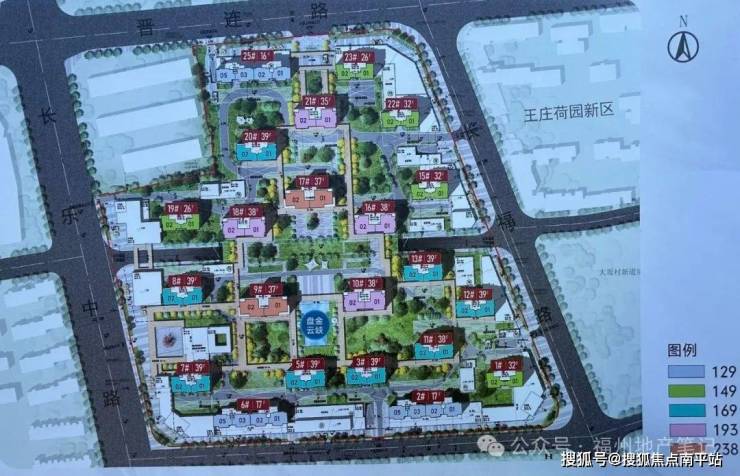 业态规划上:22栋住宅,全T2,其中3栋连体小高130㎡、5栋149㎡大高、8栋169㎡超高、4栋超高193㎡、2栋37层超高238㎡。