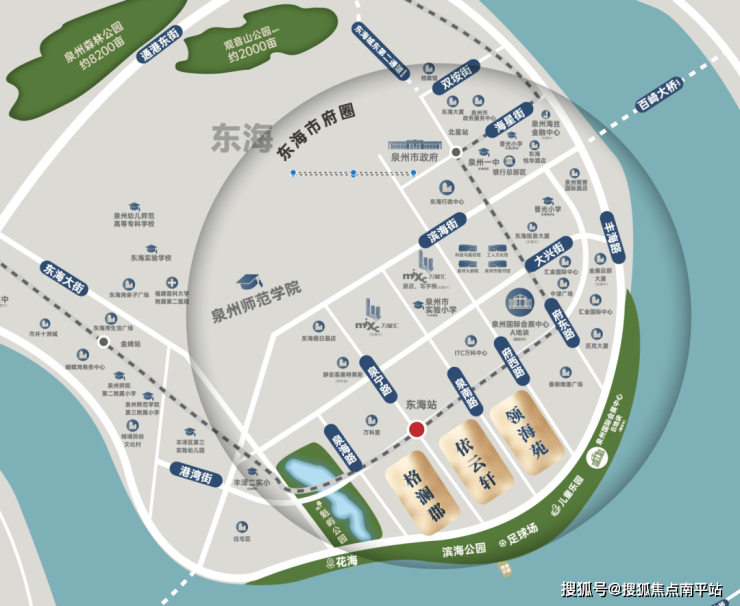 项目位于东海中央商务区核芯,政商文脉交汇,汇聚「新行政中心、总部经济区、金融中心、商务中心、公共文化中心」五大核心功能,聚合一城商务精粹与高净值圈层。