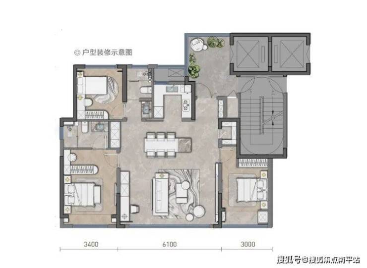 大平层尺度客厅面宽约6.1m