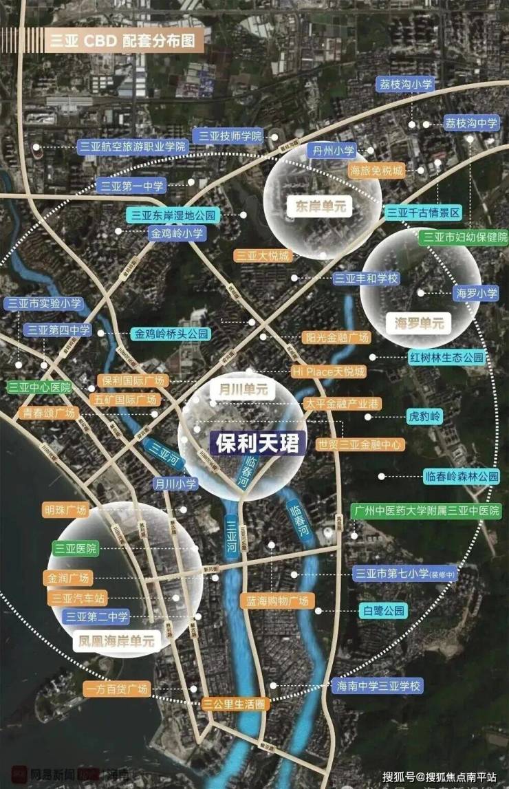 · 自然资源:三亚河、临春河双河环绕,毗邻金鸡岭公园、 临春岭森林公园 ,山脉起伏、绿脉渗透,彰显东方艺术审美“山-城-河”的对话关系