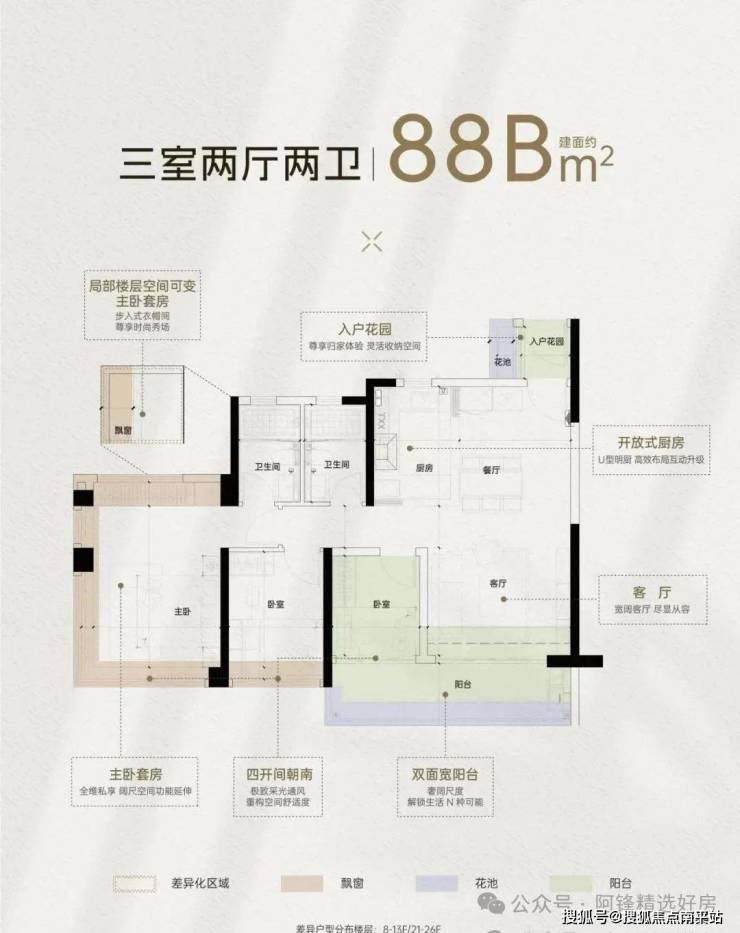6、产品:项目建面约77-135㎡三四房,四面宽南向,三房(最高)享约5米客厅,
