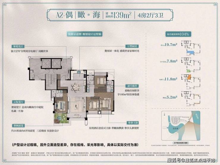 该户型综合使用率达到约109-114%,实际使用面积超200㎡。