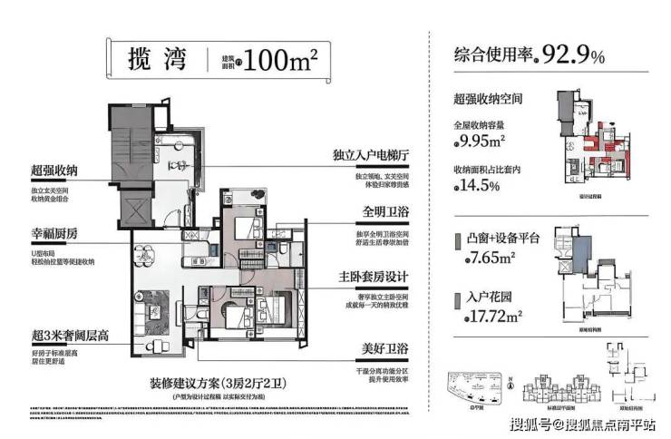 100㎡户型南北,带入户花园设计;