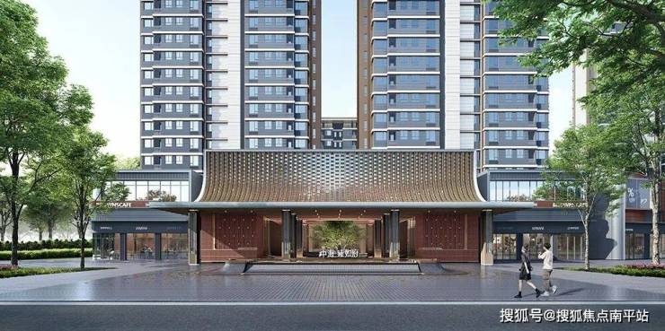 中海臻如府项目外立面汲取闽南经典斜檐翘脊等元素,弧形流线美学屋顶,“天空之翼”塔冠,独特“Y”型建筑符号,搭配质感铝合金铝板,形成温润的金幕流云立面。