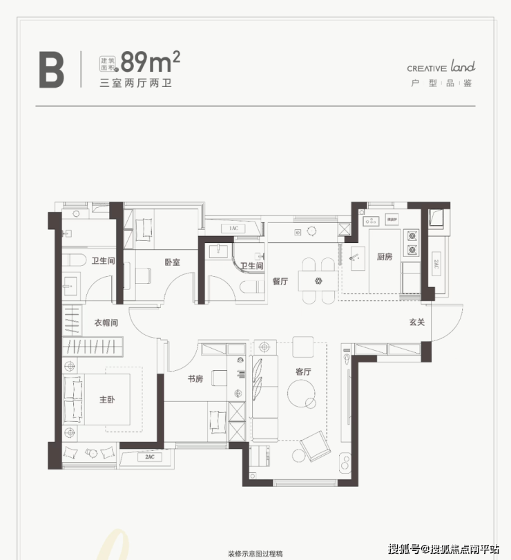 与一期相比,主卧与次卧做到拉平,主卧更大了些。