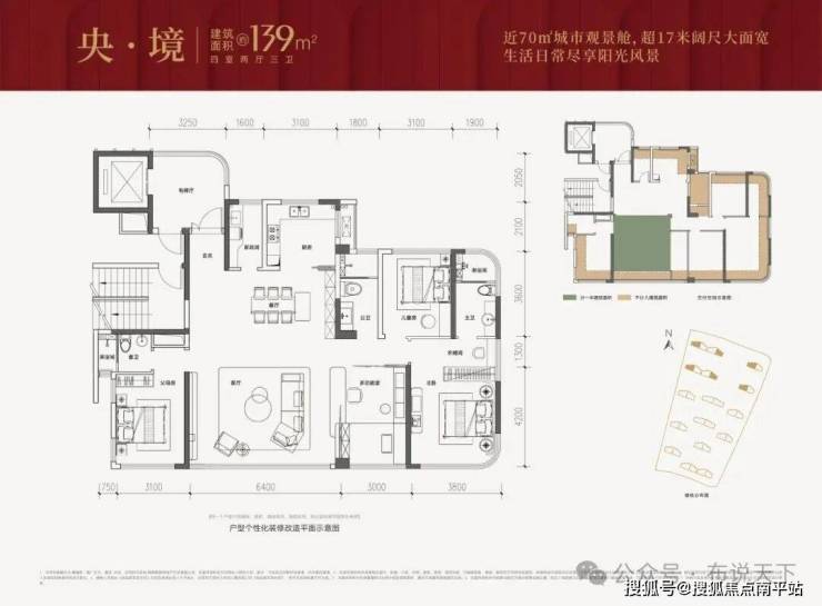 建面约139㎡得房率约110%(不含电梯厅),套内实得约154㎡,与旧规 170㎡大平层不相上下!
