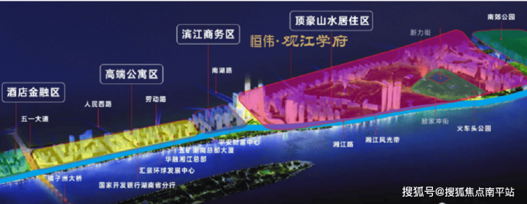 ②南湖新城,湘江东岸的璀璨明珠:长沙城发·南湖新城片区着力于打造“湘江东岸璀璨明珠”,总面积约5.02平方公里,是市委市政府“沿江建设、跨江发展”的重要片区,也是长沙市主城区的核心地带。集聚金融企业总部国家开发银行湖南省分行、湖南银行、长沙平安财富中心;汇聚高端商业汇景发展环球中心、长沙五矿广场、和立东升国际城市客厅;聚集了品质住宅保利国际广场、绿城凤起麓鸣、中海阅湘台等临江物业。