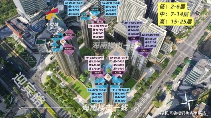 其中,4#楼全是239㎡户型,最大亮点是阳台采用错层设计,挑高5米,配备空中泳池或空中花园设计,号称三亚首个第四代住宅,因此价格也是最高,高楼层单价最高达5.84万/㎡。