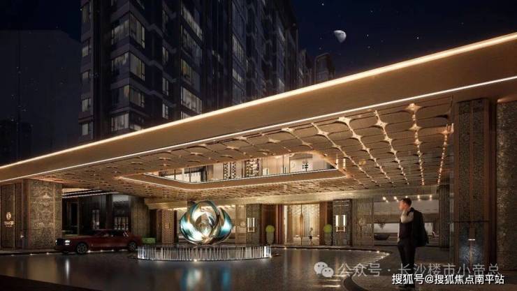 双入户大堂承启尊荣:约270m市政绿轴串联环岛式落客,自然式酒店度假体验。
