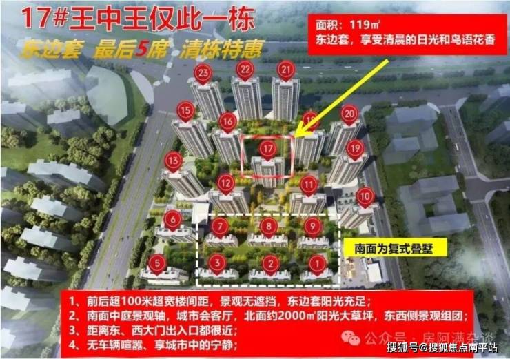 目前尾盘在售:17#中庭楼王119㎡/4房以及126㎡/4房部分洋房复式免费咨询:400-159-8559转5555【售楼部】获取详细资料!