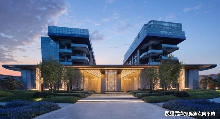 建筑立面更是大胆突破,以区域首个石材通顶搭配铝板线条,辅以类幕墙落地窗与珠花宝冠屋顶,勾勒出区域极具辨识度的地标建筑,让外观奢华感十足,成就地标视觉。