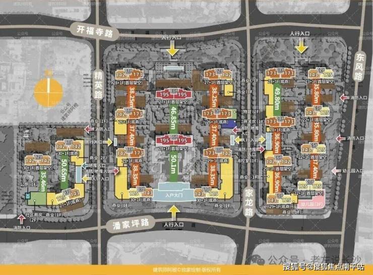 A区只有3栋楼,设计有120与135两个户型,小区大门开在精英路上,这个地块偏小,南向楼间距其实做的蛮大,但是抵消不了南侧超高层的压抑感,价格可能会比较实惠。