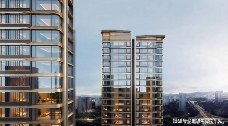 项目采用更昂贵的公建化立面设计,大面积钻感LOW-E玻璃幕墙与香槟金铝板精密拼接,加之超大窗墙比,仿佛从江岸自然生长而出,与水流的柔美形成刚柔并济的对话。
