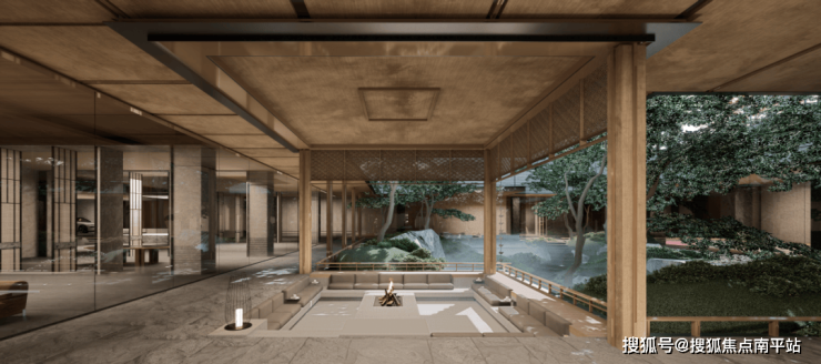 招商蛇口·天青府对展示区、庭院会所、地下车库等公共场域进行了空间效果、服务体验、配套系统的精心营造,通过寻径、探溪、抚琴、雅集、酌酒、彩境、观湖、跃步、禅逸、嘻游十大雅事植入宋韵文化,在空间内强调意境感,注重隐、奢、禅等意境呈现。