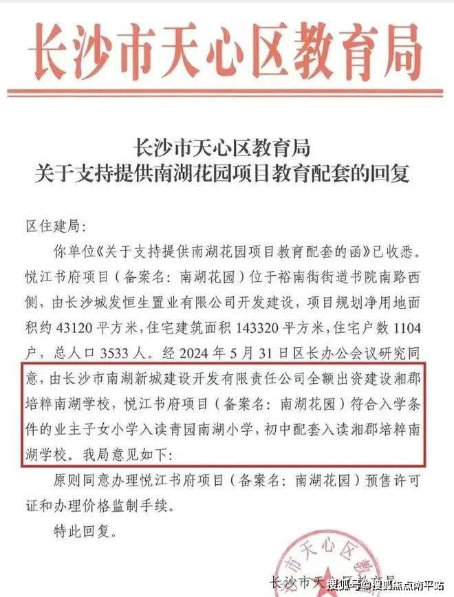 根据官方发布的最新政策文件,小区业主子女将配套入读“青园南湖小学+湘郡培粹南湖学校”,妥妥的“市中心双学位”!