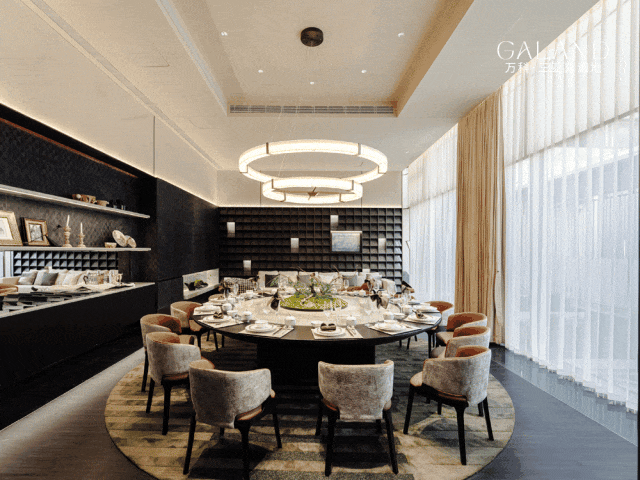 步入会所,首先映入眼帘的是海居联盟会客厅内 价值百万的螺钿雕塑,其艺术质感奠定了空间的基调。整个会客厅采用 360°环幕玻璃幕墙,将室外绿带公园与中央水景的边界彻底消隐,视觉上与自然完全贯通。