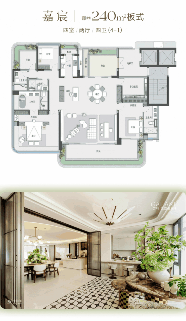 约 240㎡ 板式——嘉宸, 作为项目的“ 空中平墅 ”,其设计核心在于最大化景观视野与空间效能,并兼顾高度的居住舒适性与灵活性。