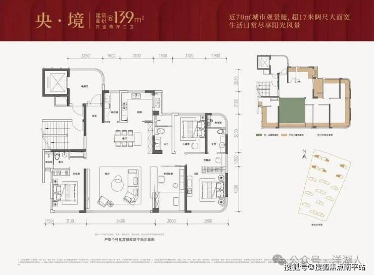 四开间朝南 超17米, 近70㎡观景舱,解锁高阶生活的无限想象,带来奢居生活体验。
